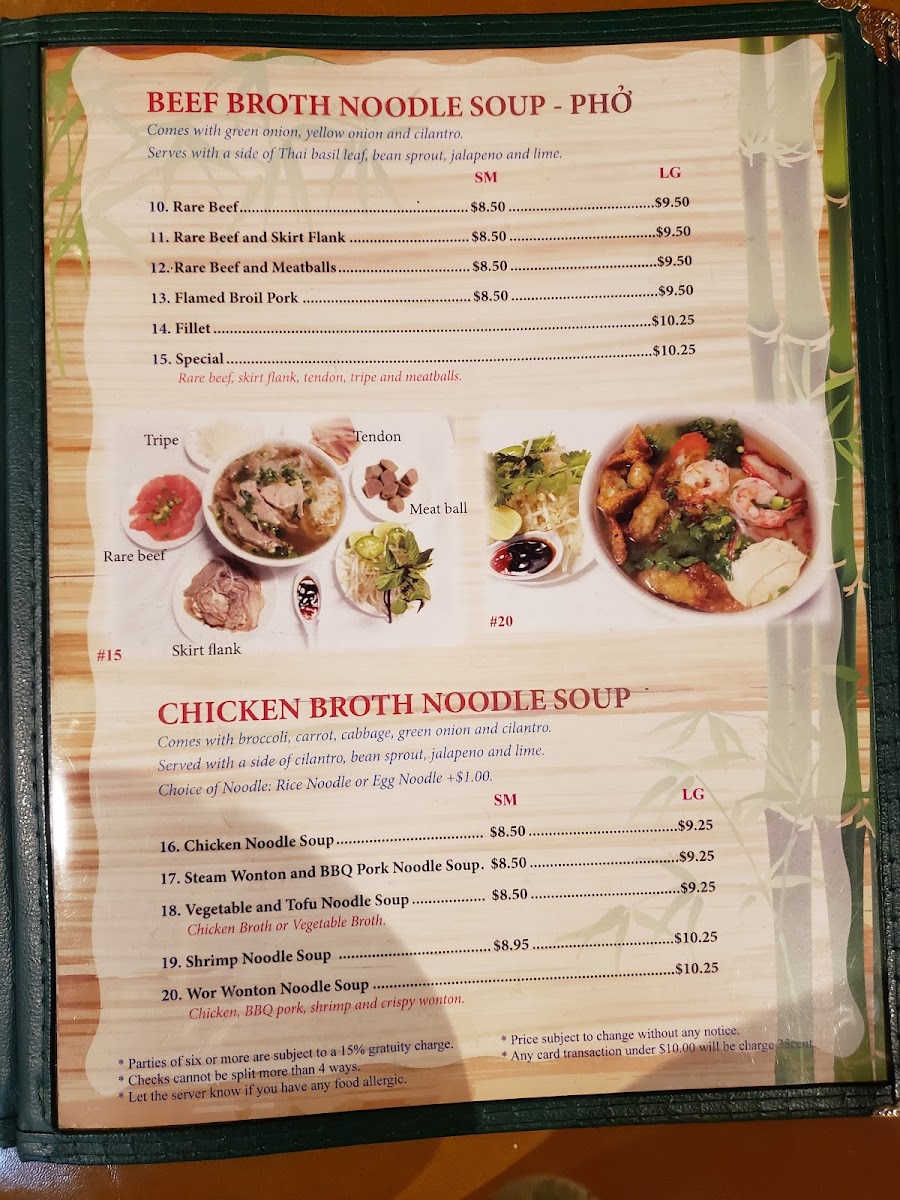 Vn Pho Fallon features a robust menu that showcases the best of Vietnamese cuisine. Dive into their heavenly Beef Broth Noodle Soup, where you can select from options like the tender Rare Beef or the slightly smoky Flamed Broil Pork. Customers rave about the Chow Fun, described by one diner as the "best I've ever had," smoky and delicious, invoking a sense of nostalgia for those special family feasts. For a lighter option, try their Vegetable and Tofu Noodle Soup, making it easy to savor the comforting broth packed with fresh ingredients.